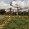Lejos de la red eléctrica, se enciende con el ritmo del sol y la brisa cálida que atraviesa los techos altos como un susurro que refresca. La casa se construye con lo que el lugar ofrece: teca cultivada en el mismo suelo que la sostiene, palma tejida por manos sabias, piedra recogida del río cercano y apilada con paciencia para resguardar el frescor del baño.
